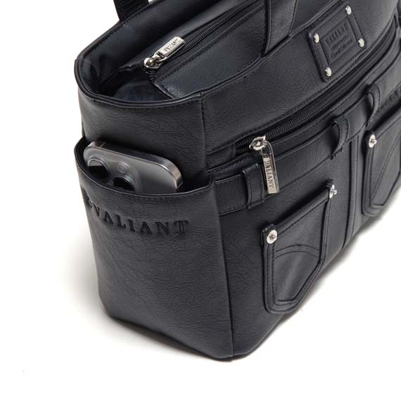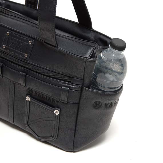 両サイドのポケットには、ペットボトルやスマホ、定期なども入りとても便利です。上部にはメインファスナーを装着して中の物も見えにくく、外側と内側にはポケットがあり収納力も抜群で小分けにも便利です。